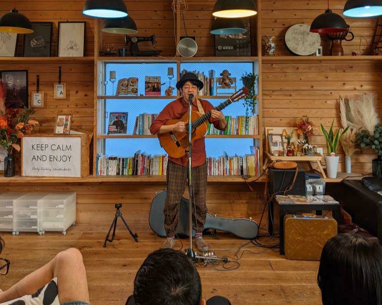ギター1本で全国各地のカフェや、雑貨屋、ギャラリー、古民家、映画館など様々な場所でライブを行ってきた“旅するミュージシャン”です。